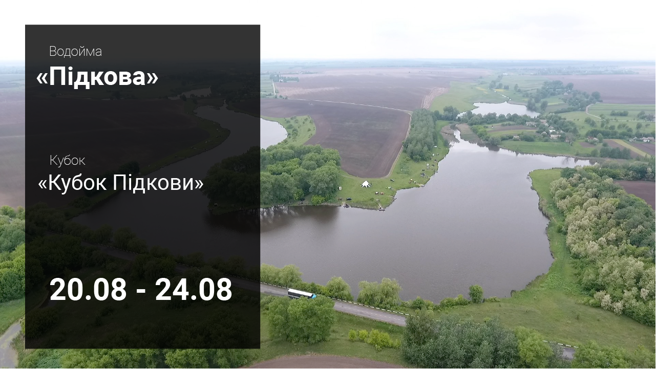 Комерційні щорічні змагання Кубок «Підкови» пройдуть на Спортивній водоймі «Підкова», що знаходиться: с. Довбиші, Чуднівського району, Житомирської області з 20 серпня 2020 р. по 24 серпня 2020 року